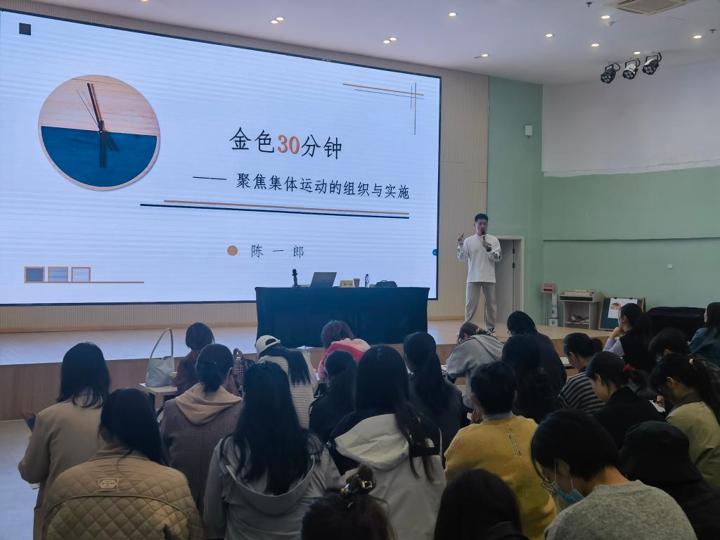 为进一步贯彻落实《3~6岁儿童学习与发展指南》以及《幼儿园保育教育质量评估指南》,提升青年教师活动组织与实施能力。2025年10月23日,太仓市科教新城幼教发展体部分青年教师参加了由太仓市镇洋幼教中心承办的《聚焦户外·指向幼儿发展优先幼儿园运动课程及运动集体教学设计、组织、实施专题研修班》活动,此次活动特邀上海著名幼教男教师、上海闵行区启英幼儿园运动课程主任、国家级运动员陈一郎为大家做关于运动主题的专题指导学习。