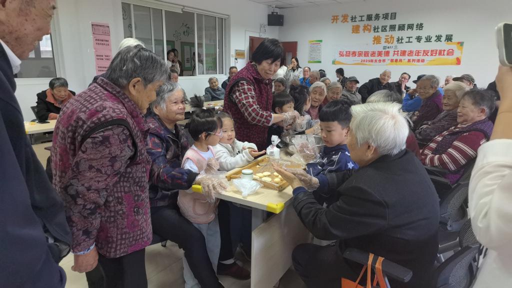2025年10月24日,科教新城幼教中心的党团员教师们带领着一群活泼可爱的小朋友,走进长丰社区开展重阳节慰问活动,为社区老人们送去了浓浓的关怀与节日祝福。